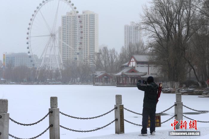 12月20日,青海西宁,市平易近正在西宁市百姓花园拍摄雪景。授热氛围感化,西宁市迎去落雪气候。青海省气呼呼象台于18日揭橥冷潮蓝色预警。 弛忠苹 摄